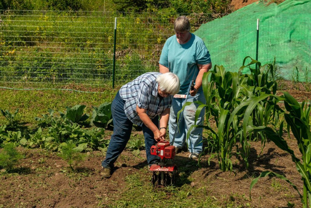 Many people came and helped with the harvest and clean up in the garden.