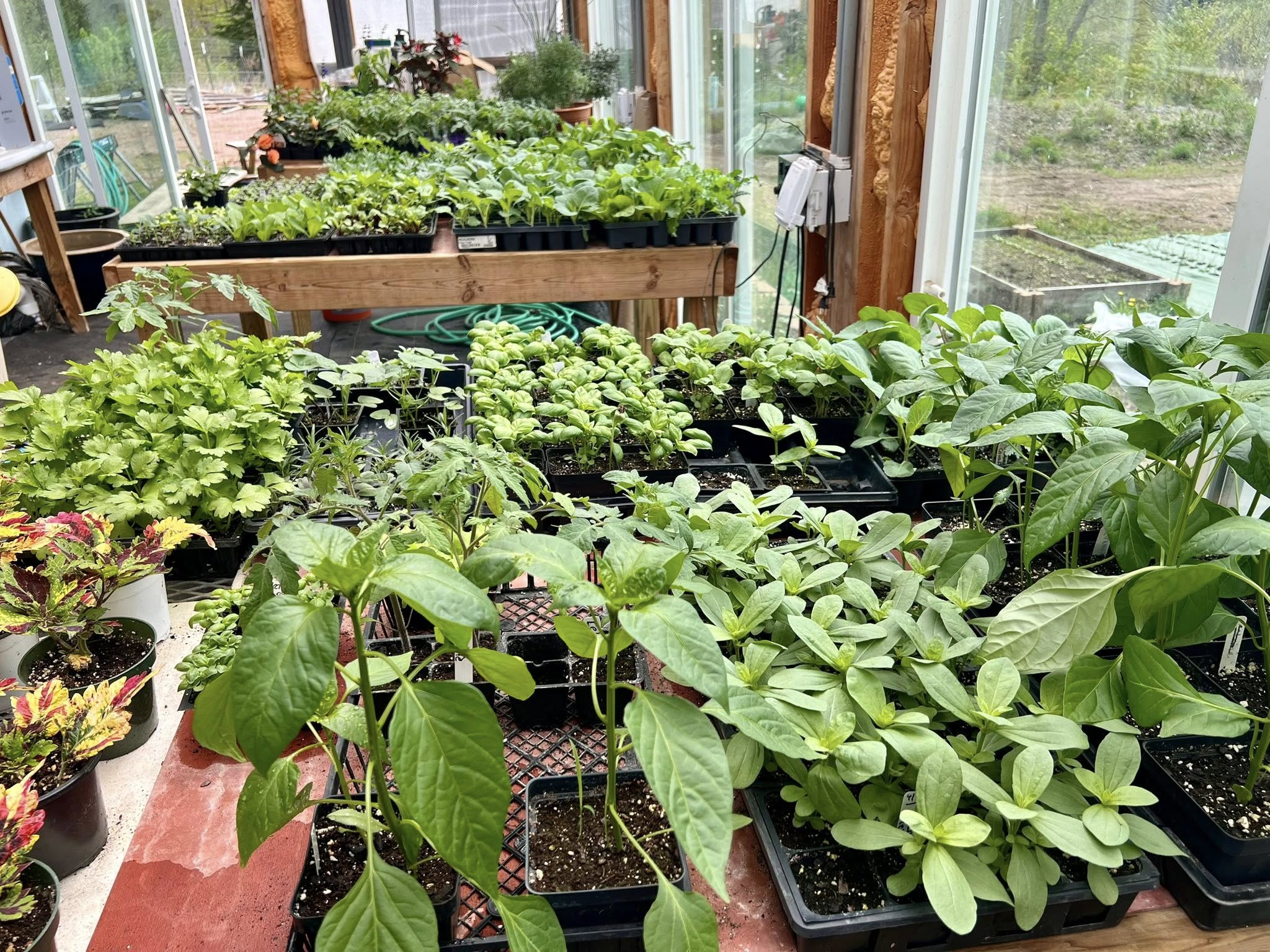This is a quick update. We are getting ready to plant the garden and are looking forward to the upcoming Seva weekend. The plants in the greenhouse almost doubled in size in the last two days. After some very hot days, it cooled off again, and Tonight we might have a frost.